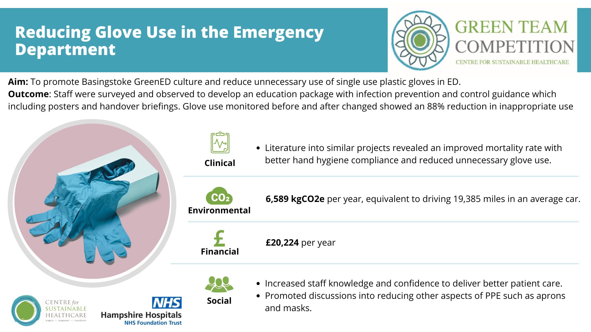 - Reduce unnecessary single use plastic gloves in ED and reduce weekly glove ordering.