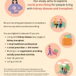 We would kindly ask you to complete a short survey via the link below and share the study information with your contacts and networks. Participation is entirely voluntary and anonymous. We are really interested in hearing your views on how people with kidney disease can be best supported to engage with social prescribing.